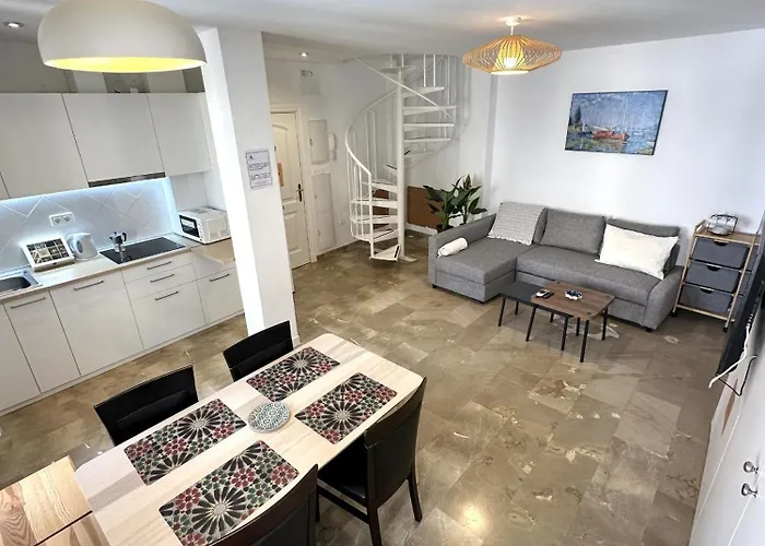 The 110 m² Colcha Suites - Duplex Penthouse By Medina Living Granada lies in the Vahrenheide district of Granada and offers swift access to the Basilica of San Juan de Dios, which is a mere 5 minutes' walk away. Featuring a terrace, this 2-bedroom apartment is located in the centre of the city.